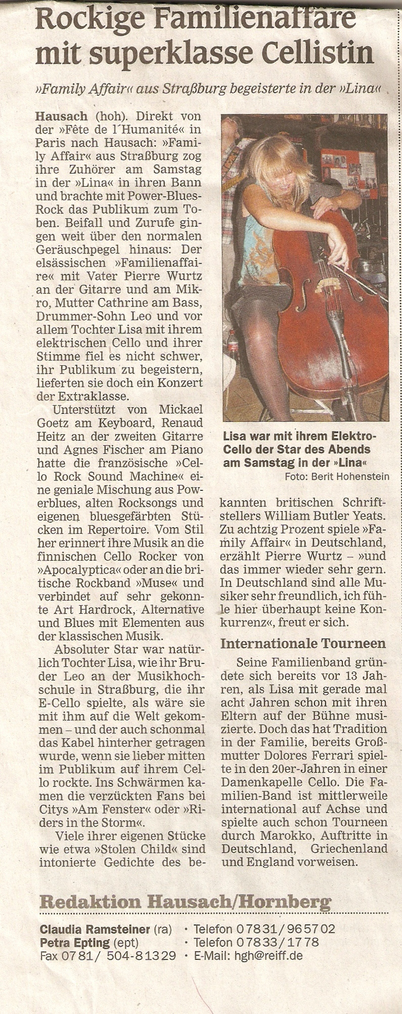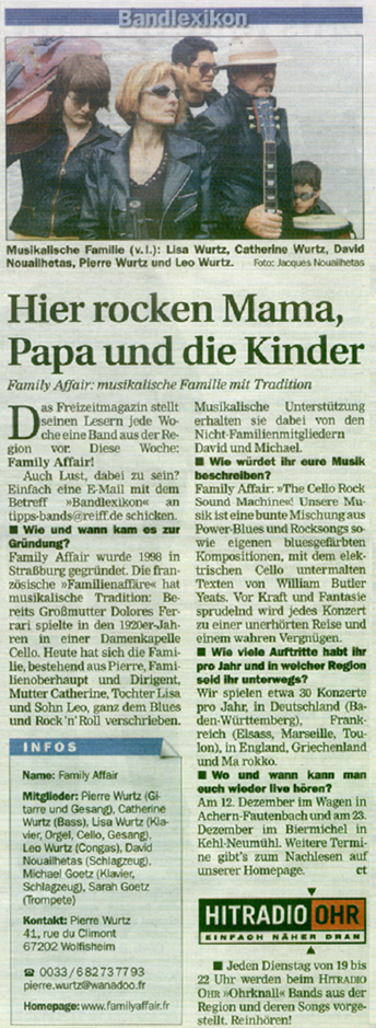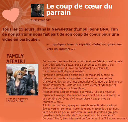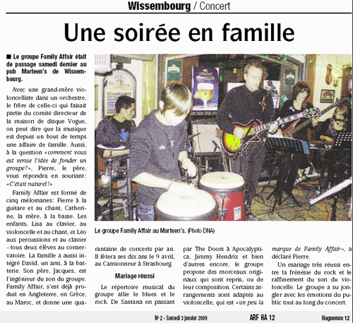 En février 2010, Family Affair a été interviewé par l'équipe d'Alsace20 dans le cadre de sa participation au concours IMPULSONS organisé par les DNA.